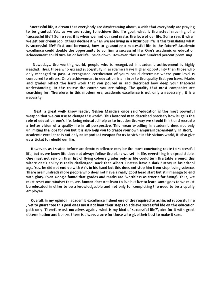 Academic Excellence Guarantees A Successful Life Free Essay Example